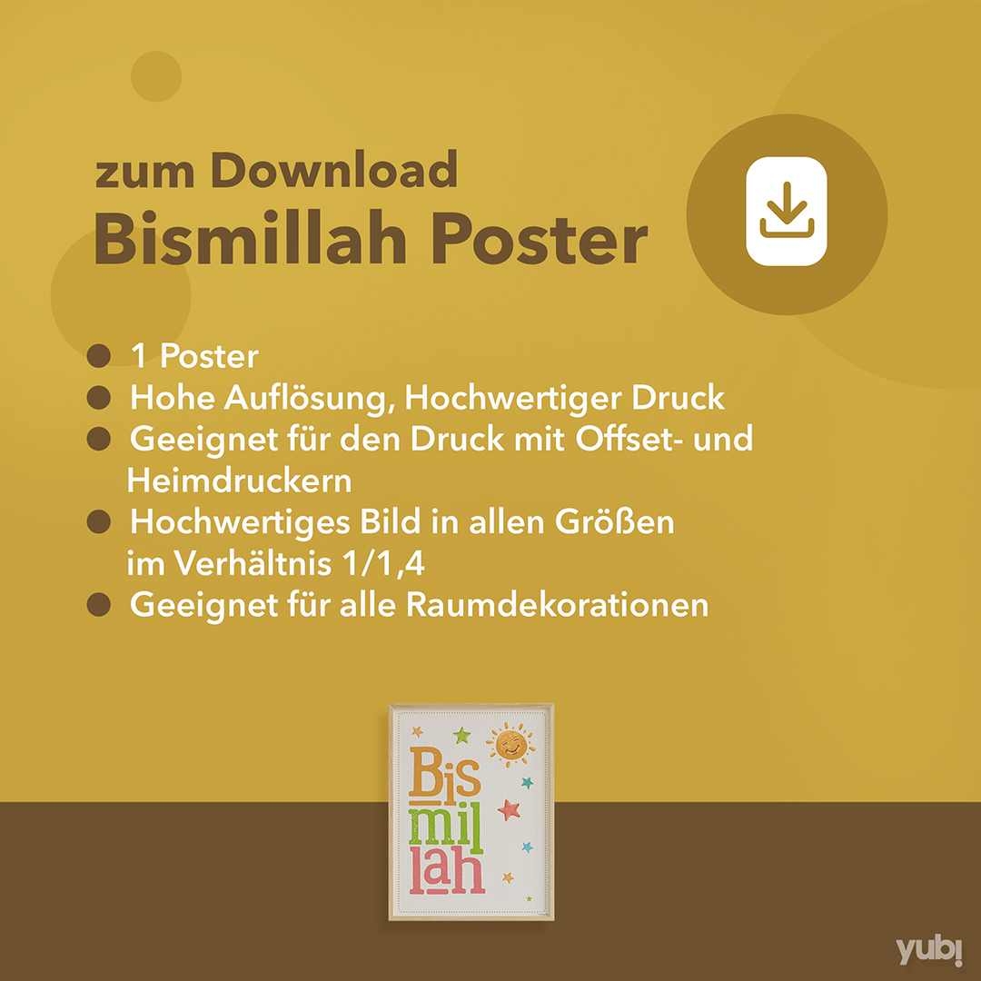 Entdecke unsere einzigartigen, minimalistischen islamischen Wandposter im Yubi Onlineshop. Verfügbar als sofort nutzbare Download-Dateien, kannst Du diese Poster in jeder Größe ausdrucken und so den Raum Deines Kindes individuell gestalten. Verleihe dem Kinderzimmer eine inspirierende Note und stärke den Glauben und das Selbstvertrauen Deines Kindes mit unseren liebevoll gestalteten Postern.